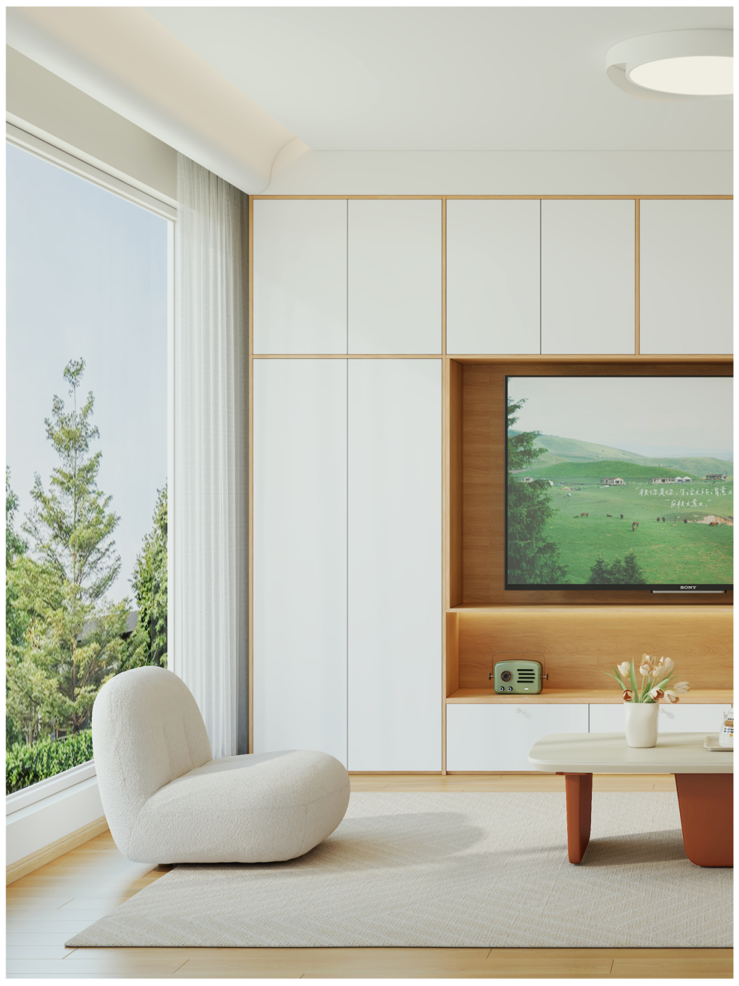 回字形電視柜解鎖客廳收納密碼??藏八露二布局實用美觀兼具,無拉手設計讓視覺更簡約