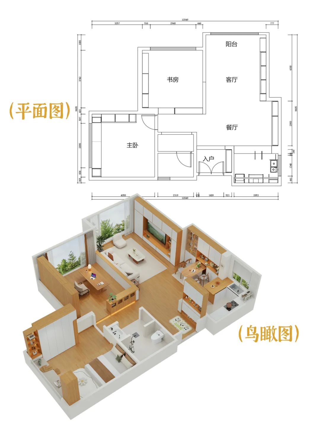 全屋案例丨78㎡原木風,拆半墻客書房一體,客廳通透又顯大!