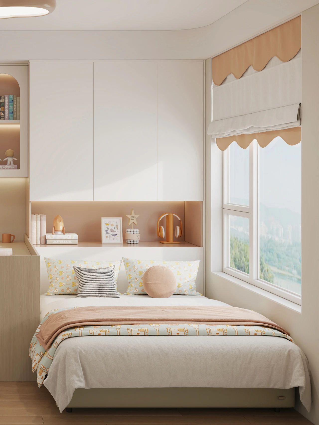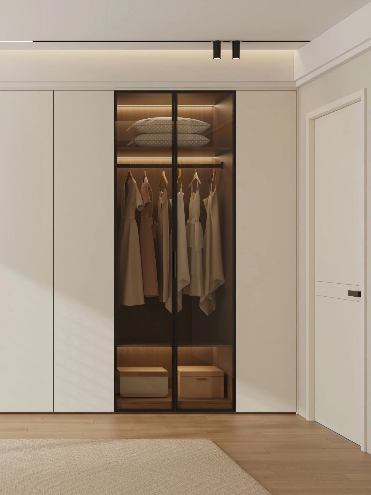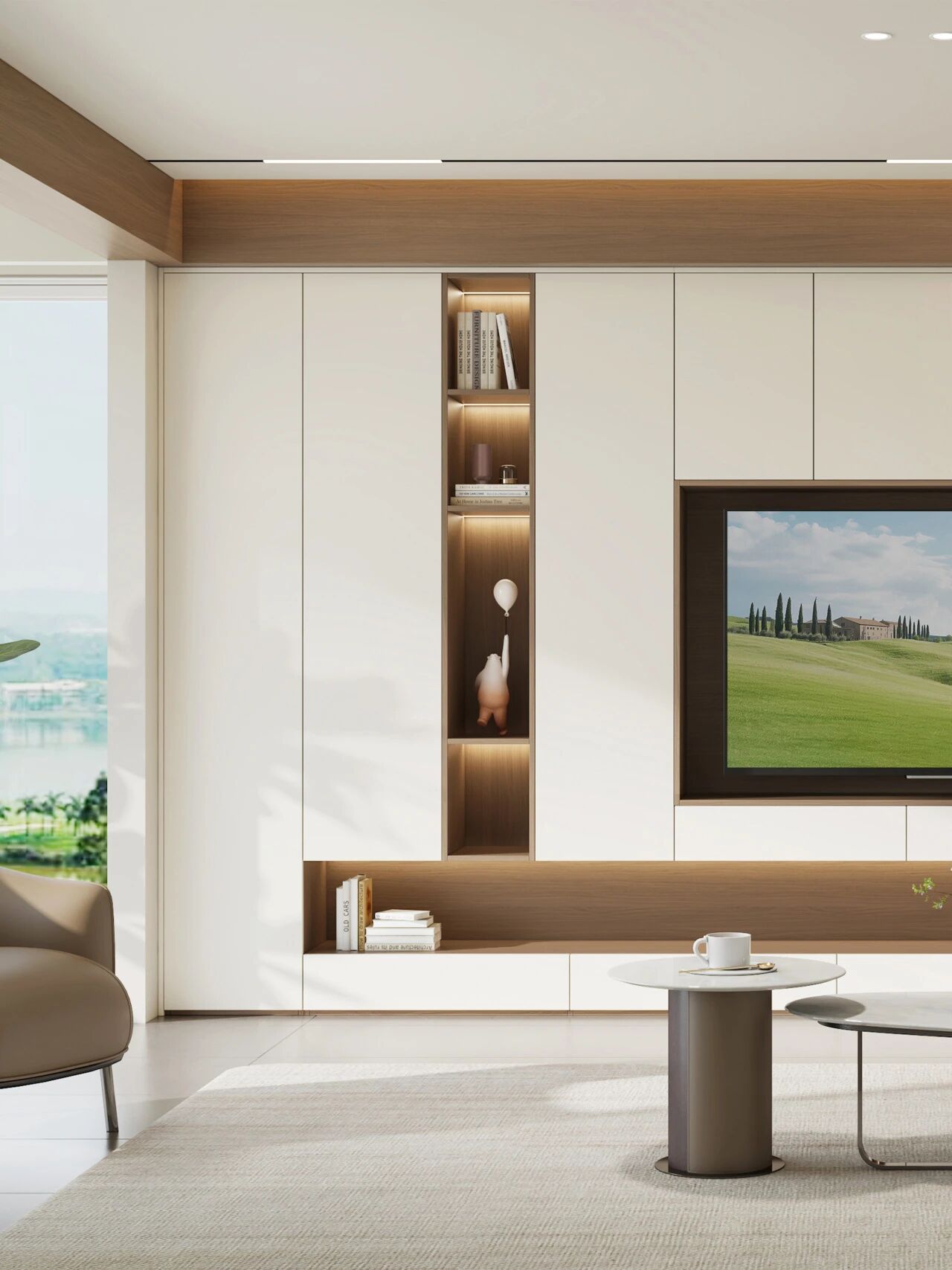 墻面擱板打造立體收納,燈帶靈動美觀??