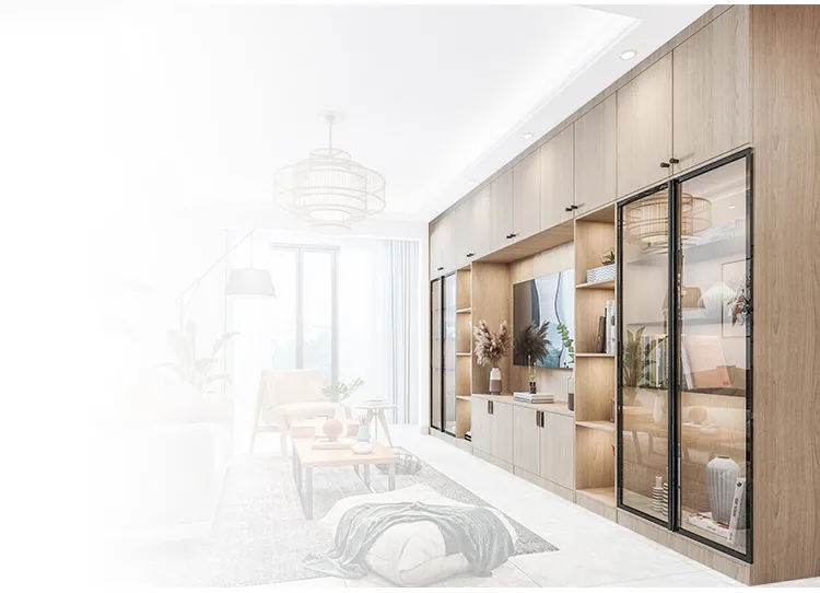 1、定制柜體整體采用原木色,自然的紋理和明朗的色彩能有效擴大空間視覺感;