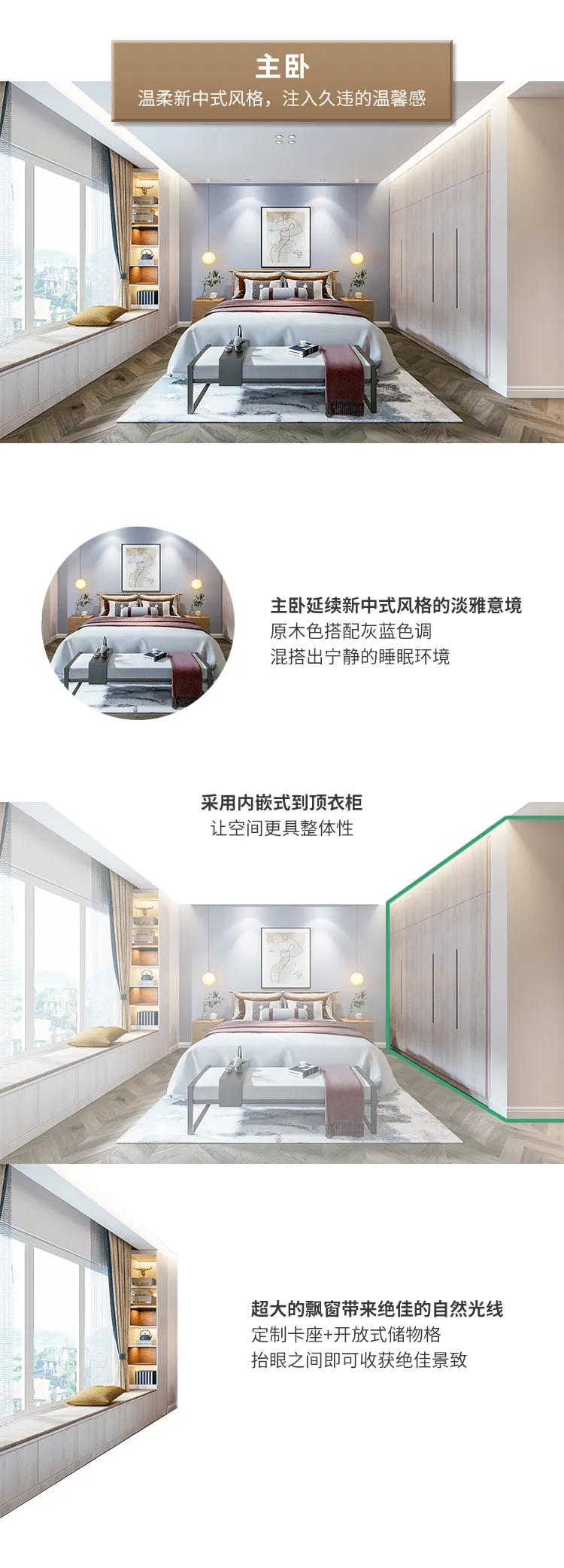 本案中,設計師摒棄過多的裝飾,以一派禪意之態,碰撞出現代生活與禪意之風的審美趣味。攝取“木”的力量與美,大面積鋪陳溫潤木飾面以表達自然的人居美學,滿足屋主對自然生活的渴望。