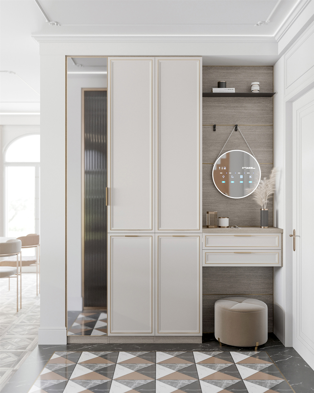 “一進(jìn)家門(mén),智能鏡就開(kāi)始主動(dòng)報(bào)時(shí),換下高跟鞋,放下手提包,把外套放進(jìn)柜內(nèi)消毒,進(jìn)門(mén)那一刻就開(kāi)始享受品質(zhì)生活。”
