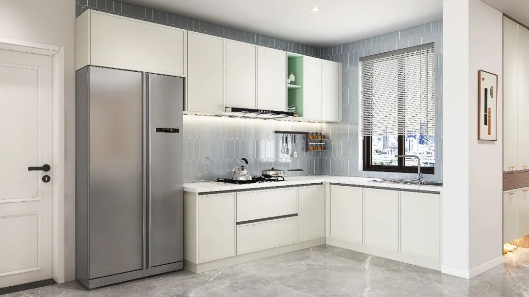 為了讓空間更通透顯大,設計師將廚房做了開放式改造,打掉原本的隔斷墻(非承重墻),打造L型櫥柜,形成烹飪的三角動線,下廚方便省力。