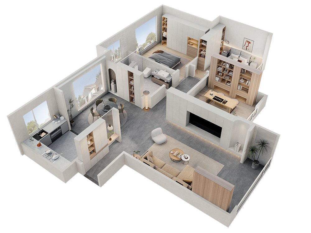 1、全屋以灰白為主基調,配色樸素淡雅;