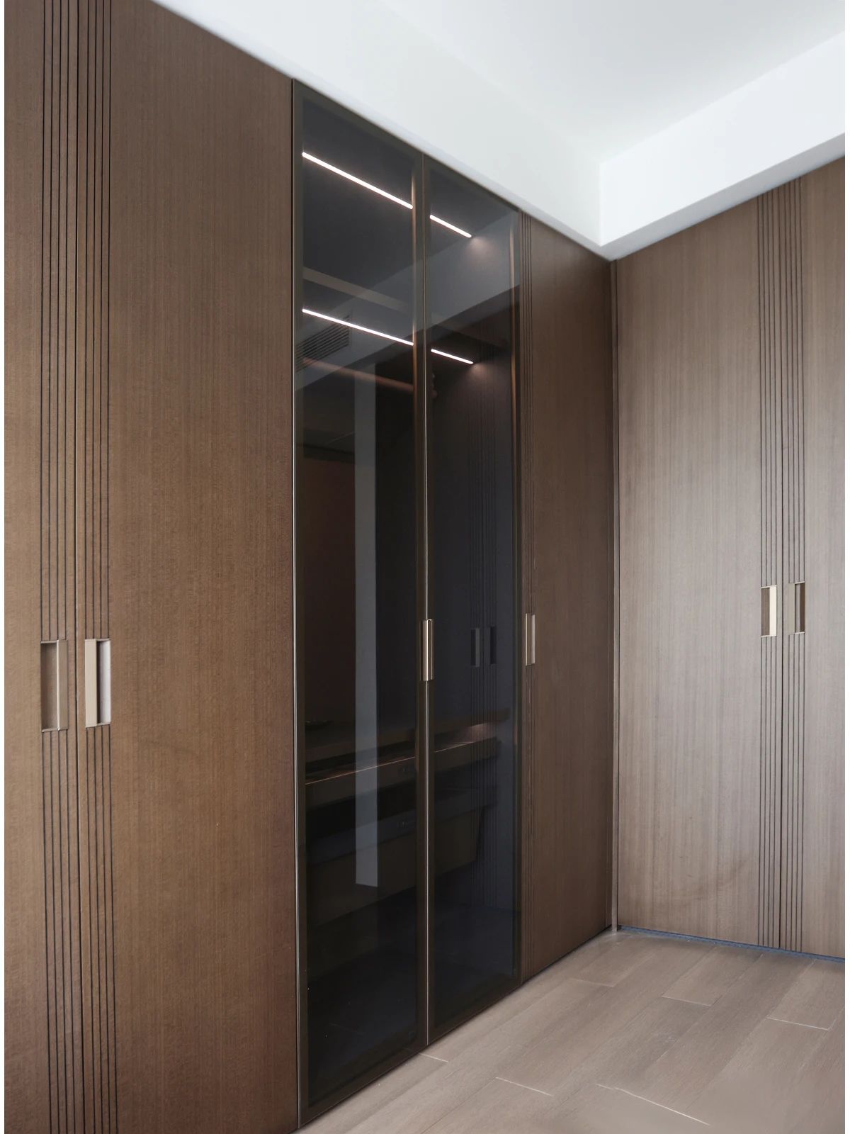 ②木紋柜門質感十足,搭配金屬拉手,彰顯出沉穩高級的空間格調