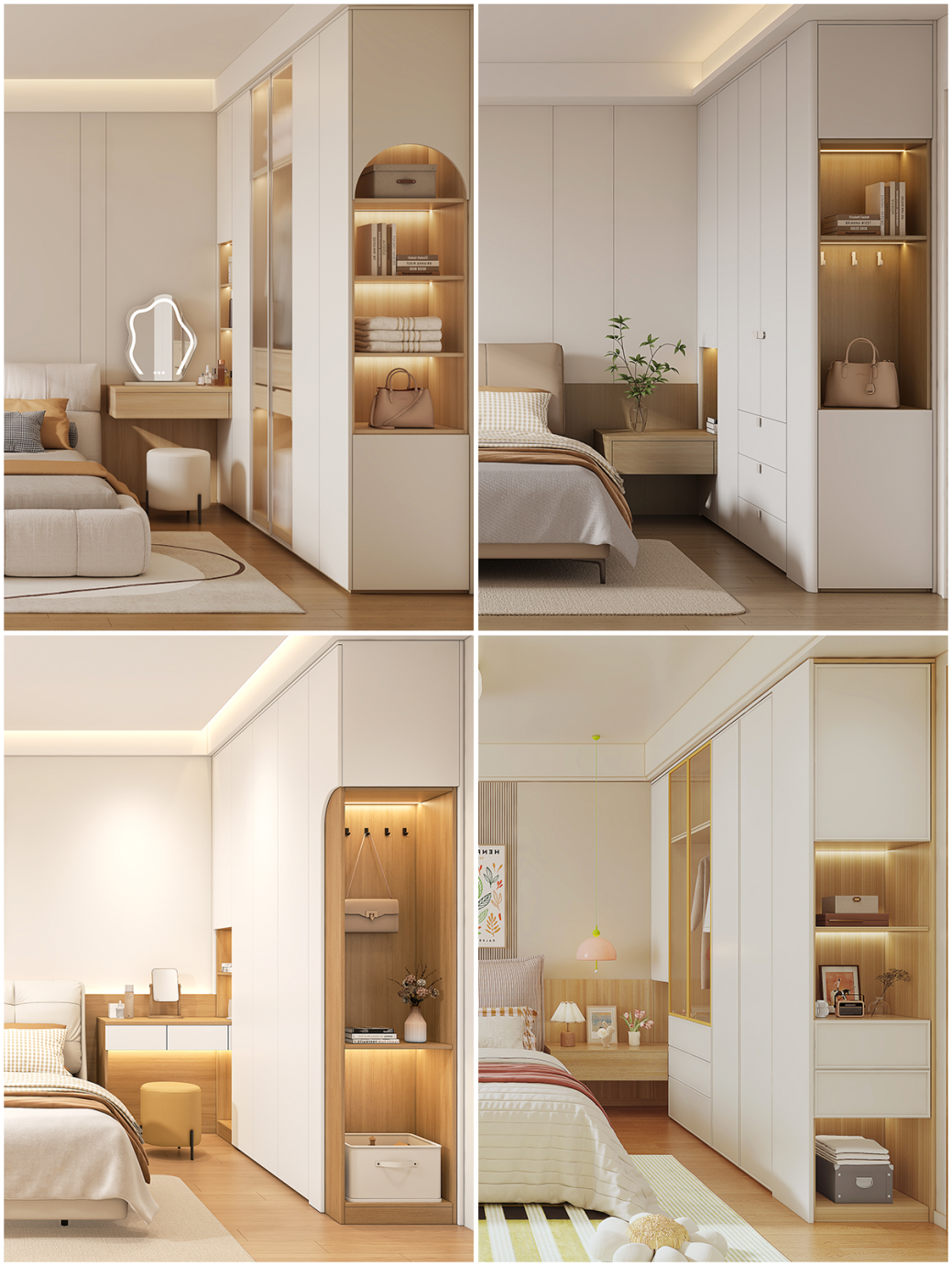 側(cè)面留出開放格,協(xié)調(diào)臥室開關(guān),還能做次凈衣區(qū),提高空間利用率~