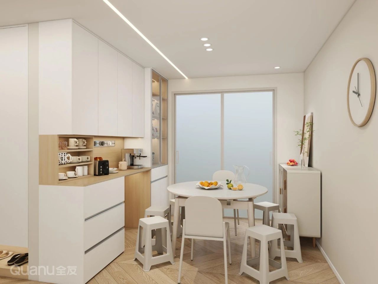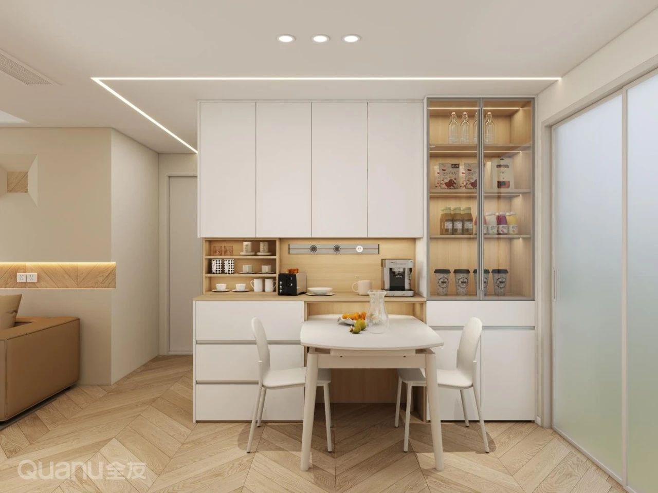 小戶型餐廳如何同時實現水吧臺、零食柜和電器收納?一個冰箱門儲物柜就能搞定!