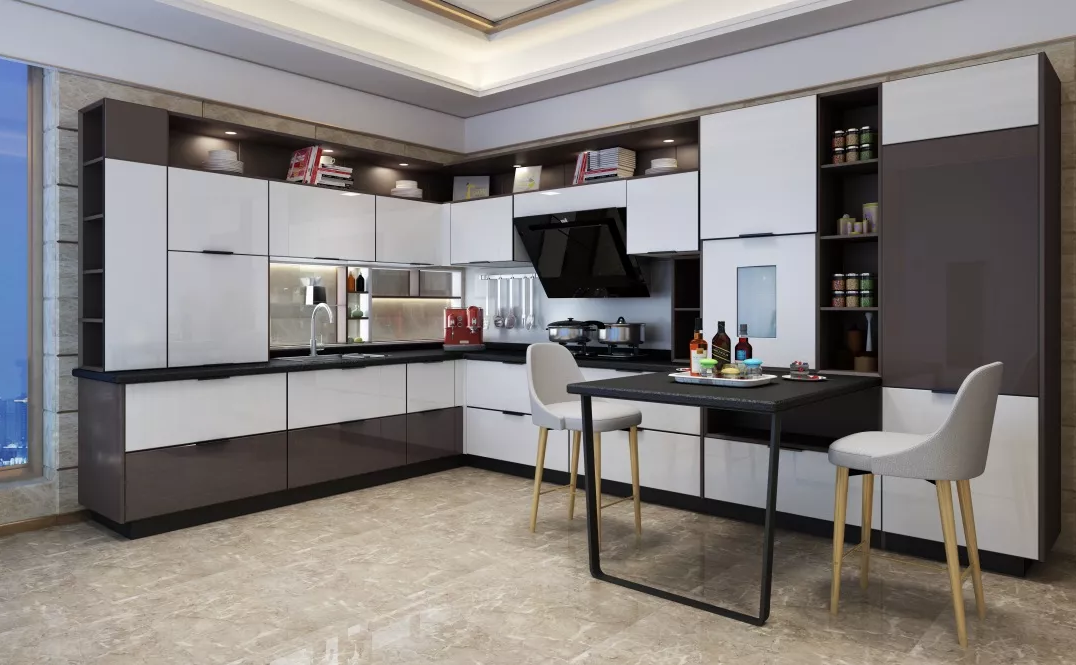 巴西系列的定制櫥柜打造了現(xiàn)代感十足的開放式廚房,