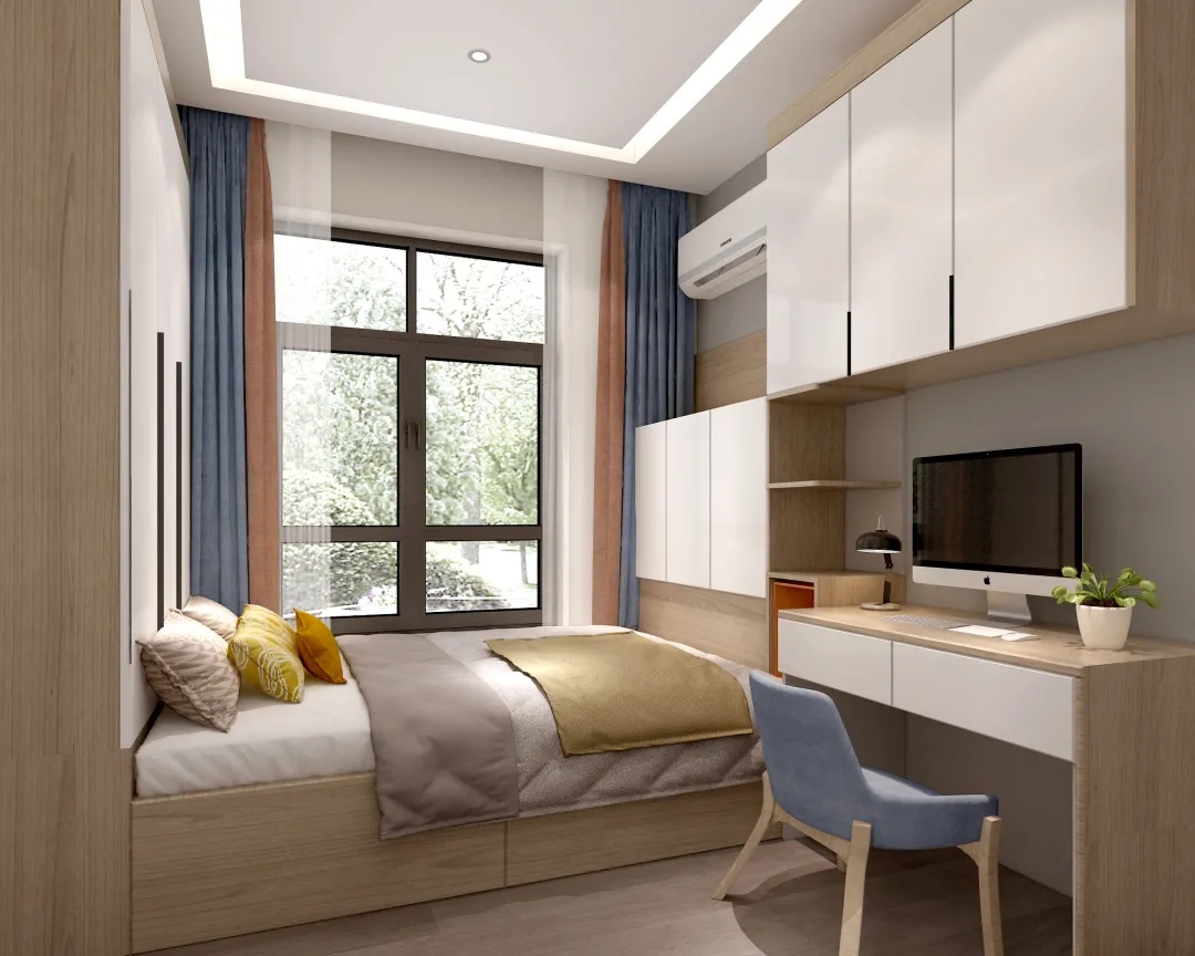 居室空間是根據相互間的功能關系組合而成的,而且功能空間相互滲透,空間的利用率達到最高。一間臥室不單單承載了睡眠功能,它也可以是合理分區的儲物空間,采光優秀的辦公區域,集多功能于一室。