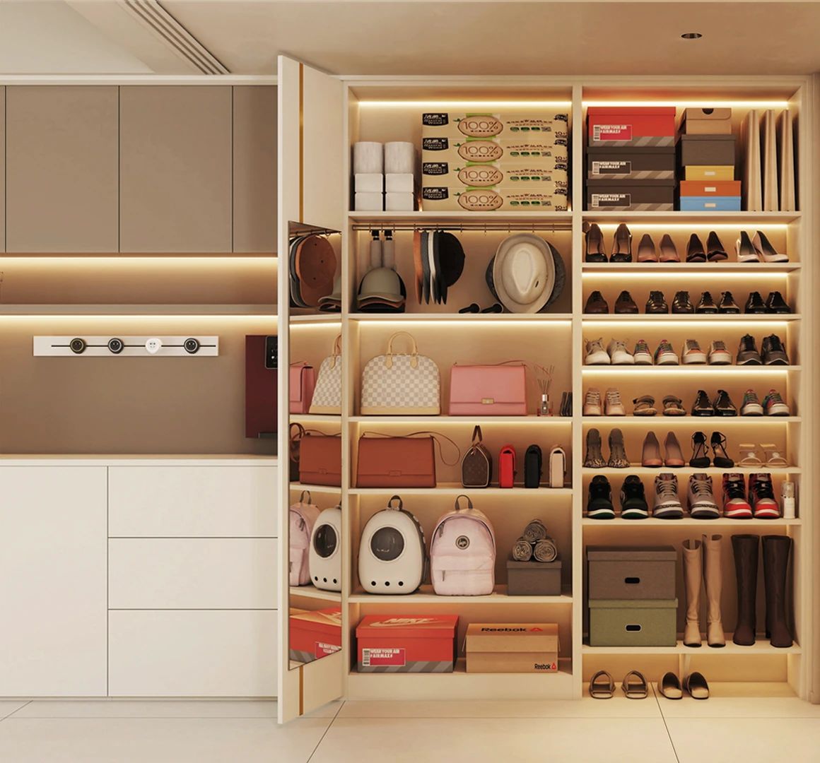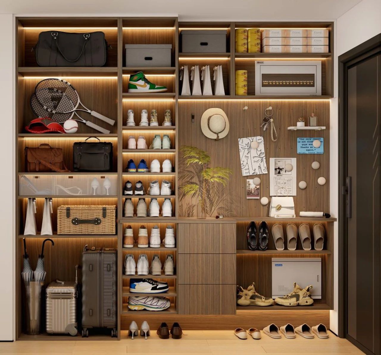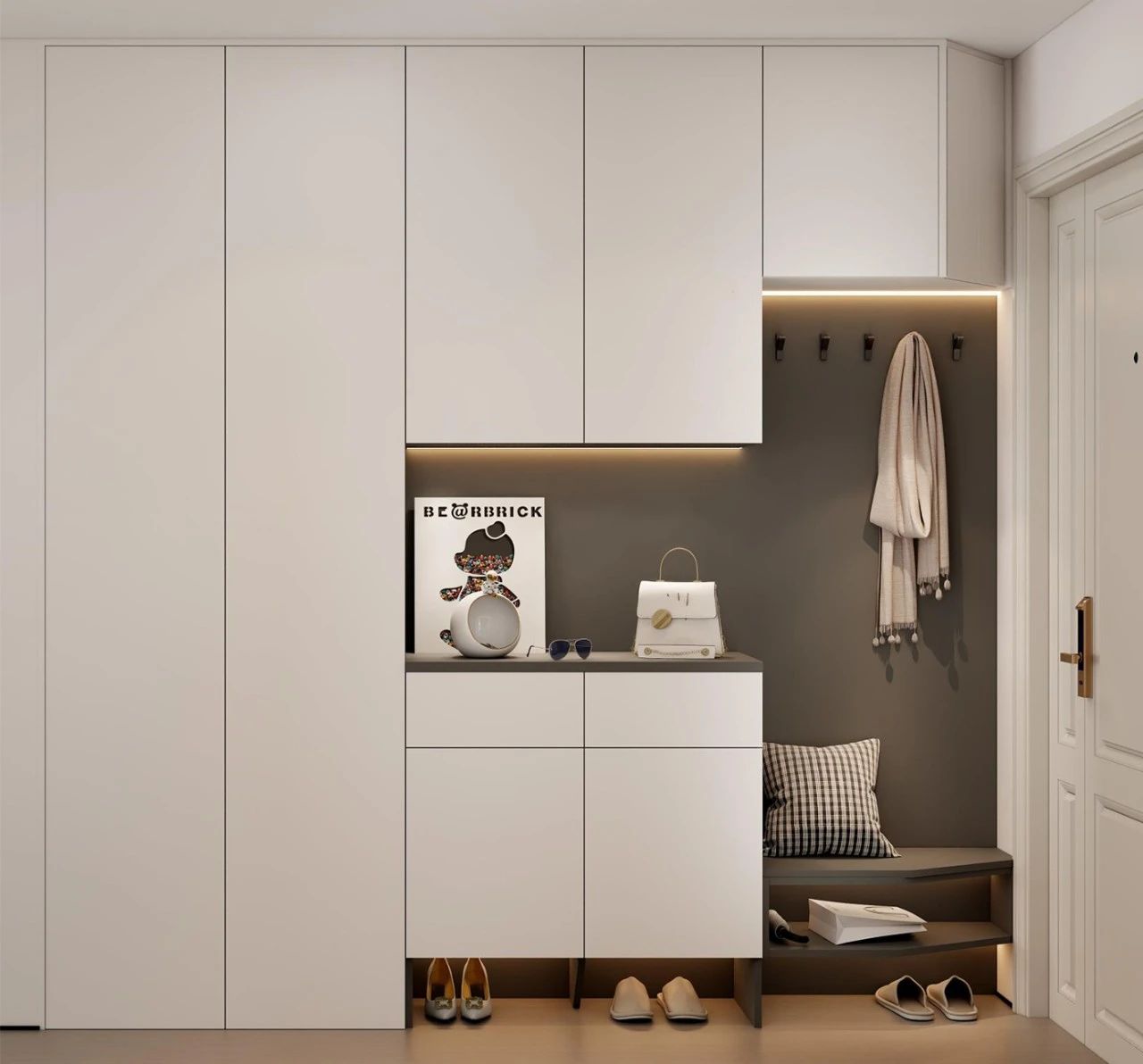 誰還在“生搬硬套”抄玄關柜的作業??? 鞋子、衣服、包包、雨傘、鑰匙、包裹……定制玄關柜,得先得想好自己的需求再設計哦~